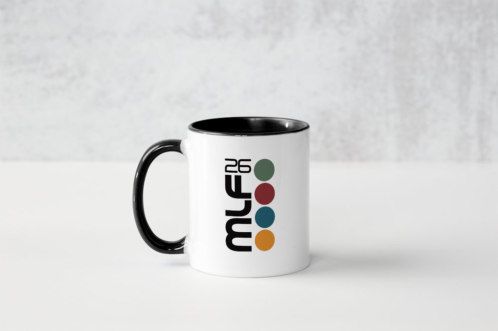 Crafted from durable white ceramic with a striking black interior trim, this mug delivers a modern, high-contrast look that perfectly frames the bold MLF 26 logo. It’s practical, elegant, and unmistakably literary.